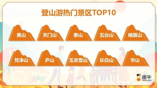 登山游熱門景區(qū)方面,黃山、天門山、泰山、五臺(tái)山、峨眉山、梵凈山、廬山、玉龍雪山、長(zhǎng)白山、華山等憑借各自獨(dú)特的自然風(fēng)光與深厚的文化底蘊(yùn),成為途牛用戶更為熱門的選擇,位列“2025登山游熱門景區(qū)榜單”前列。