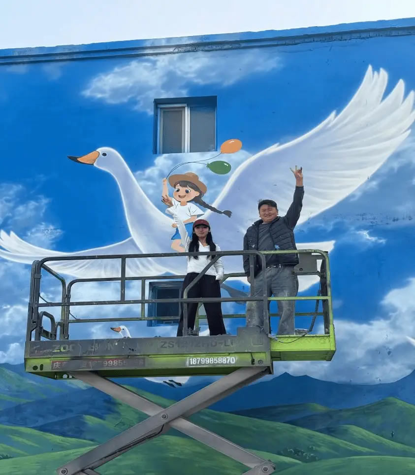 10月25日,新疆庫爾勒市杜鵑河畔天鵝驛站旁,一幅高15米、寬13米的天鵝主題彩繪正式完成創(chuàng)作。墻繪師雷雪帶領(lǐng)團(tuán)隊(duì)耗時(shí)十幾天匠心打磨,將藍(lán)天白云、河流高山與靈動天鵝的景致定格在墻體之上,為這座城市的“生態(tài)名片”再添藝術(shù)亮色。