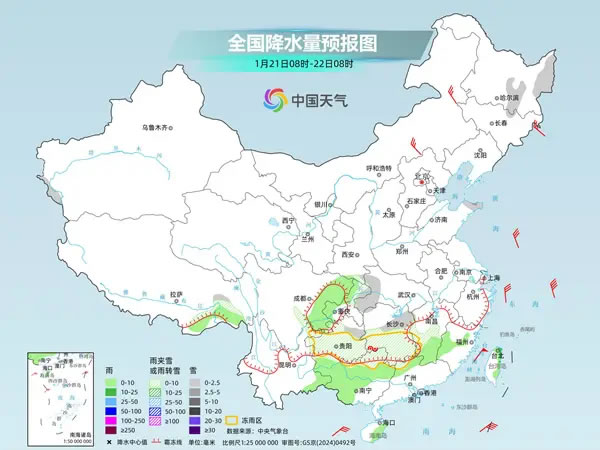 中國(guó)天氣網(wǎng)訊 今天(1月21日),南方雨雪繼續(xù)減少、減弱,但湖南、貴州等地部分地區(qū)仍有凍雨,需注意防范。明后天,中東部大部將進(jìn)入雨雪間歇期。隨著寒潮和雨雪影響結(jié)束,后天起長(zhǎng)江以南地區(qū)氣溫將陸續(xù)轉(zhuǎn)為偏高,但北方多地氣溫仍然低迷,需注意保暖。
