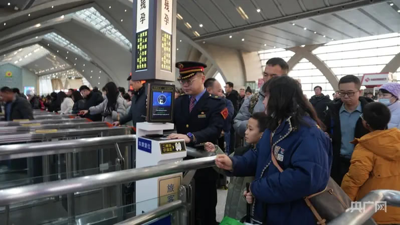 火車站工作人員正在引導(dǎo)乘客通過(guò)閘機(jī)(央廣網(wǎng)發(fā) 銀川火車站供圖)