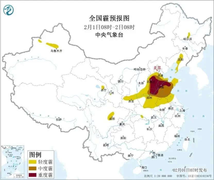 此外,預計1日至4日,華北南部、黃淮中西部、江漢等地的部分地區(qū)有輕至中度霾天氣,局地有重度霾。2月5日起,受冷空氣影響,上述地區(qū)霾天氣自北向南逐漸減弱消散。公眾外出請做好個人健康防護,易感人群建議減少戶外活動。