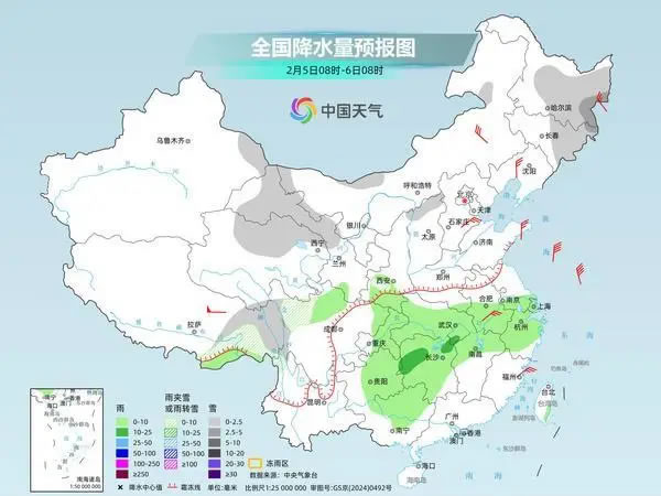 今起三天(2月5日至7日),寒潮將給中東部帶來明顯降溫,東北地區(qū)東部、江南東部降溫可超12℃,部分地區(qū)有初春重返寒冬的感覺。降溫的同時,今明天中東部還會迎來大范圍雨雪天氣,安徽中南部、江蘇中南部、浙江北部、上海等地的部分地區(qū)有大到暴雪。