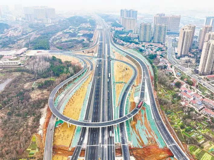 8時(shí)許,記者跟隨車流駛?cè)雿湫碌碾p向八車道,以時(shí)速120公里的速度行駛依舊平穩(wěn)舒暢,視野開闊。車道兩側(cè),黃鶴樓浮雕聲屏障、“將軍劍”“天仙配”等12座文化雕塑依次呈現(xiàn),服務(wù)區(qū)、收費(fèi)站、天橋等建筑中融入荊楚文化元素,紅色文化、農(nóng)耕文化、知音文化點(diǎn)綴其間。