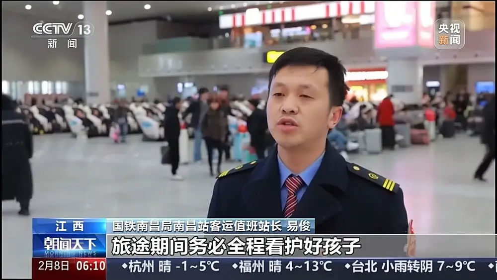 國鐵南昌局南昌站客運值班站長 易。郝猛酒陂g務必全程看護好孩子,切勿讓孩子脫離視線。如需幫助,可聯(lián)系車站工作人員和民警,謹防孩子走失、接觸陌生人員。
