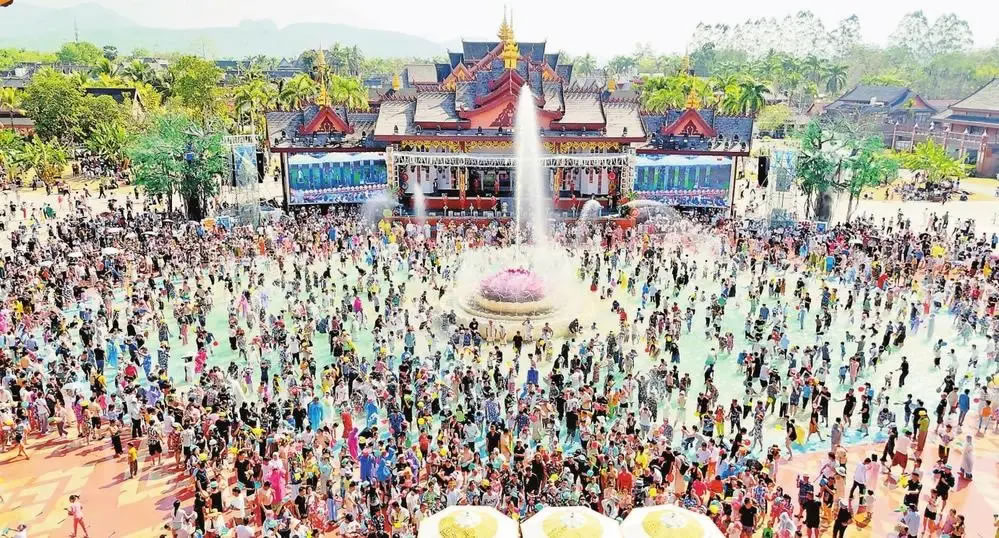 在位于景洪市勐罕鎮(zhèn)的AAAA級(jí)旅游景區(qū)傣族園,潑水廣場(chǎng)上萬(wàn)人同潑吉祥水,飛濺的水花與游客的笑聲交織成歡樂(lè)的海洋。“我們每天下午舉辦3場(chǎng)潑水狂歡活動(dòng),能同時(shí)容納上萬(wàn)人的廣場(chǎng)幾乎場(chǎng)場(chǎng)爆滿。”傣族園景區(qū)副總經(jīng)理歐成林介紹,景區(qū)持續(xù)人氣爆棚,春節(jié)假期接待游客21.87萬(wàn)人次,單日入園人數(shù)最高達(dá)34870人。