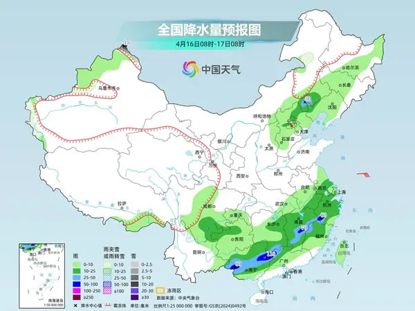 中央氣象臺預(yù)計,今天,內(nèi)蒙古東北部、黑龍江西北部、新疆北疆北部和南疆盆地、青海北部和西部、甘肅河西等地部分地區(qū)有小雪或雨夾雪,其中,新疆北疆阿勒泰山區(qū)部分地區(qū)有中到大雪,局地暴雪。貴州東部、江南中南部以及西北地區(qū)東部、華北等地部分地區(qū)有中到大雨,其中,湖南中部、江西中南部、福建西北部等地部分地區(qū)有暴雨,局地大暴雨。