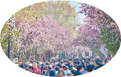 近日,第四屆五大道海棠花節(jié)舉辦,推出6大主題板塊、123場(chǎng)演出及26處主題展陳,為明媚春色再添意趣,吸引不少游客前來探尋春日美景。清明假期,五大道的大理道上人流如織,層層疊疊的海棠花海下,市民與游客穿行其間,舉起相機(jī)定格滿城春色。