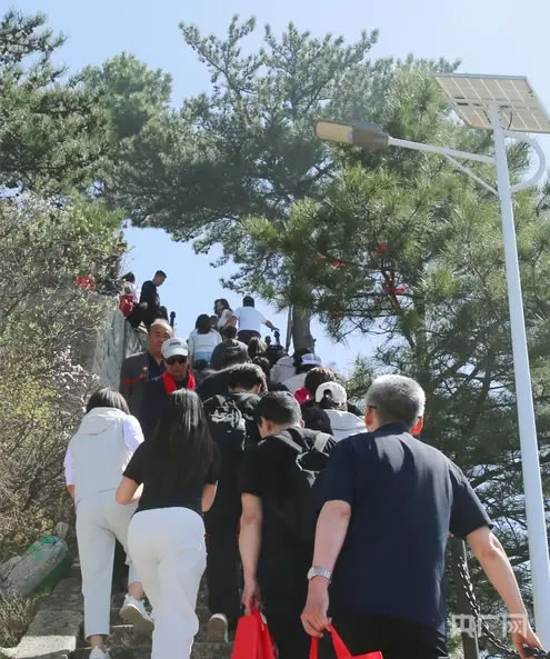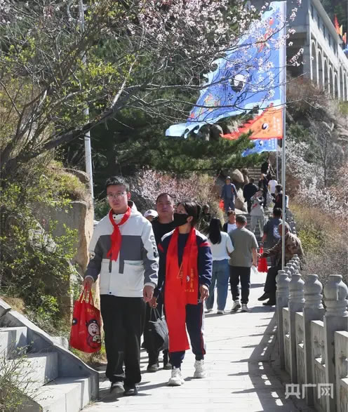 沿著青石步道拾級(jí)而上,步步皆景、處處入畫;ㄖ﹄S風(fēng)輕舒,花瓣簌簌飄落,鋪就一條條浪漫花徑;林間鳥鳴清脆,與游客歡聲笑語(yǔ)交織,匯成動(dòng)聽的春日交響曲;山間云影流轉(zhuǎn),陽(yáng)光透過(guò)花枝灑下斑駁光影,一步一景皆藏詩(shī)意。游客們或漫步花海深呼吸,沉醉自然野趣;或舉手機(jī)相機(jī)駐足打卡,定格春日盛景;或結(jié)伴邊走邊聊,賞雄奇風(fēng)光、品道教文化,盡享踏青愜意。