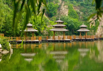 九如山以自然山水而聞名,山依水勢(shì),水奪天工,托起一片世外奧區(qū)。遠(yuǎn)遠(yuǎn)望去,可見泉涌成溪,溪流成瀑,瀑落成潭,潭潭相通,匯集成八潭明鏡。是所謂:峽谷有流,聚在平湖,山泉涓滴,匯成高潭。層層疊嶂,層層儲(chǔ)水,一年四季,不管天公旱澇,無(wú)論氣候寒暑,九如山的潭水總是那樣清瑩玉潔,滋潤(rùn)山體。游人可以在潭中泛舟,可以在池邊戲水,享受天開畫境,觸摸水景幻變,放懷吸取大自然的無(wú)窮靈感。