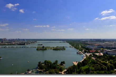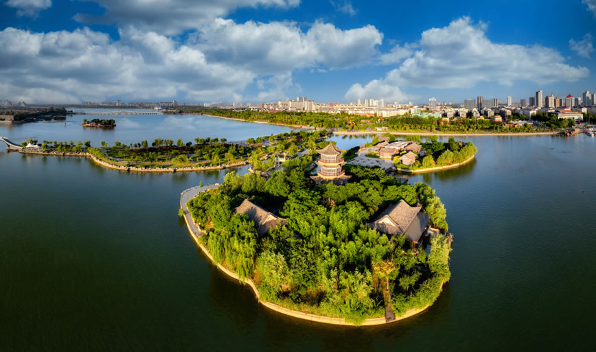 國(guó)家4A級(jí)旅游區(qū)、山東省重點(diǎn)服務(wù)業(yè)園區(qū)、山東省生態(tài)漁業(yè)示范園、國(guó)家垂釣基地,也是“江北水城·運(yùn)河古都——生態(tài)聊城”城市品牌的核心區(qū)域。位于聊城市中心城區(qū),由10個(gè)湖區(qū)和20塊水面組成,總面積6.3平方千米,湖岸線長(zhǎng)達(dá)16千米,有“南有西子,北有東昌”之美譽(yù),是中國(guó)江北地區(qū)罕見(jiàn)的大型城內(nèi)湖泊。東昌湖湖始于北宋熙寧三年(1070年),水深平均達(dá)3米,最深處5米。水質(zhì)清澈,景色宜人,適宜水上游樂(lè)項(xiàng)目的開(kāi)發(fā)與建設(shè)。