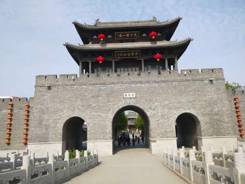 古城牌坊為臺(tái)兒莊“水陸通衢”牌坊,她見證了臺(tái)兒莊往日的繁榮。這條街道被稱為衙門大街,1947年,駐守在這里的國民黨軍隊(duì),把衙門街改為繁榮街,建國后繼續(xù)沿用這一街名。重建古城時(shí),恢復(fù)衙門街的舊名。