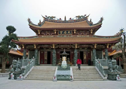 天后宮是天后圣母宮的簡稱,它興修于雍正年間,祭祀海神林默。1938年,天后宮毀于臺(tái)兒莊大戰(zhàn)戰(zhàn)火。今天重建的天后宮,是我國內(nèi)地同類建筑中質(zhì)量標(biāo)準(zhǔn)最高的一座?偨ㄖ娣e1508平方米,為二進(jìn)庭院格局。由正殿、左右?guī)、鐘鼓樓等建筑?gòu)成。這座建筑,脊飾鏤空灰塑二龍戲珠,線條舒展流暢,木雕精美,彩繪點(diǎn)染,雕梁畫棟,金碧輝煌。