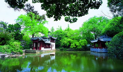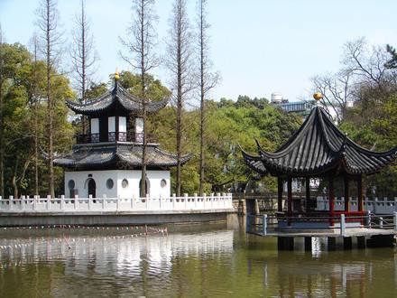 是一座具有獨(dú)特風(fēng)格的明代園林,由明代龔氏園、沈氏園、金氏園和城隍廟合并而成,為上海五大古典園林之一。秋霞圃以清水池塘為中心,石山環(huán)繞,古木參天,造園藝術(shù)獨(dú)特,分桃花潭、凝霞閣、清鏡堂、邑廟等四個(gè)景區(qū)。桃花潭景區(qū)的池上草堂,有“一堂靜對(duì)移時(shí)久,勝似西湖十里長(zhǎng)”的贊譽(yù)。凝霞閣景區(qū)的“環(huán)翠軒”軒西有復(fù)廊式“碑廊”,上集明清碑刻17方。從西門入園,院內(nèi)森桂軒的四周遍植桂樹;軒南置明代遺物“三星石”,分別取名“福、祿、壽”;園內(nèi)還有一“涉趣橋”,建于民國(guó)十年(1921年),連接曲徑北岸,橫跨幽泉清溪。