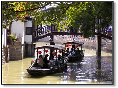 名鎮(zhèn)朱家角古鎮(zhèn)旅游區(qū)水之美、橋之古、街之奇、園之精,不臨其境,難言其妙,不踏石板老街,不探深巷幽弄,不走拱型石橋,不乘咿呀小舟,又如何體現(xiàn)“船在水上行,人在畫中游”的感覺(jué)?!