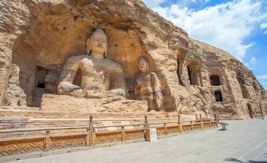 云岡石窟,原名靈巖寺、石佛寺。位于山西省大同市西郊17公里處的武州山南麓,是中國著名的石窟群之一。云岡石窟的開鑿始于北魏時(shí)期,北魏皇始三年(398年),道武帝拓跋珪將都城從盛樂(今和林格爾縣)遷至平城(今大同市),武州山成為盛樂與平城之間的交通要沖。文成帝拓跋濬即位后,令沙門統(tǒng)曇曜主持復(fù)法大業(yè)。在文成帝的支持下,曇曜選擇了鐘靈毓秀的武州山,"鑿山石壁,開窟五所,鐫建佛像各一,高者七十尺,次六十尺,雕飾奇?zhèn),冠于一?quot;。云岡的大部分洞窟在孝文帝元宏遷都洛陽前完工,但是造像工程則一直延續(xù)到正光年間(520~525年)。云岡石窟的開鑿歷時(shí)約150年,歷經(jīng)北魏、東魏、西魏、北齊、隋、唐等朝代,現(xiàn)存主要洞窟45個(gè),大小窟龕252個(gè),石雕造像59000余尊,是中國石窟藝術(shù)寶庫中的瑰寶。