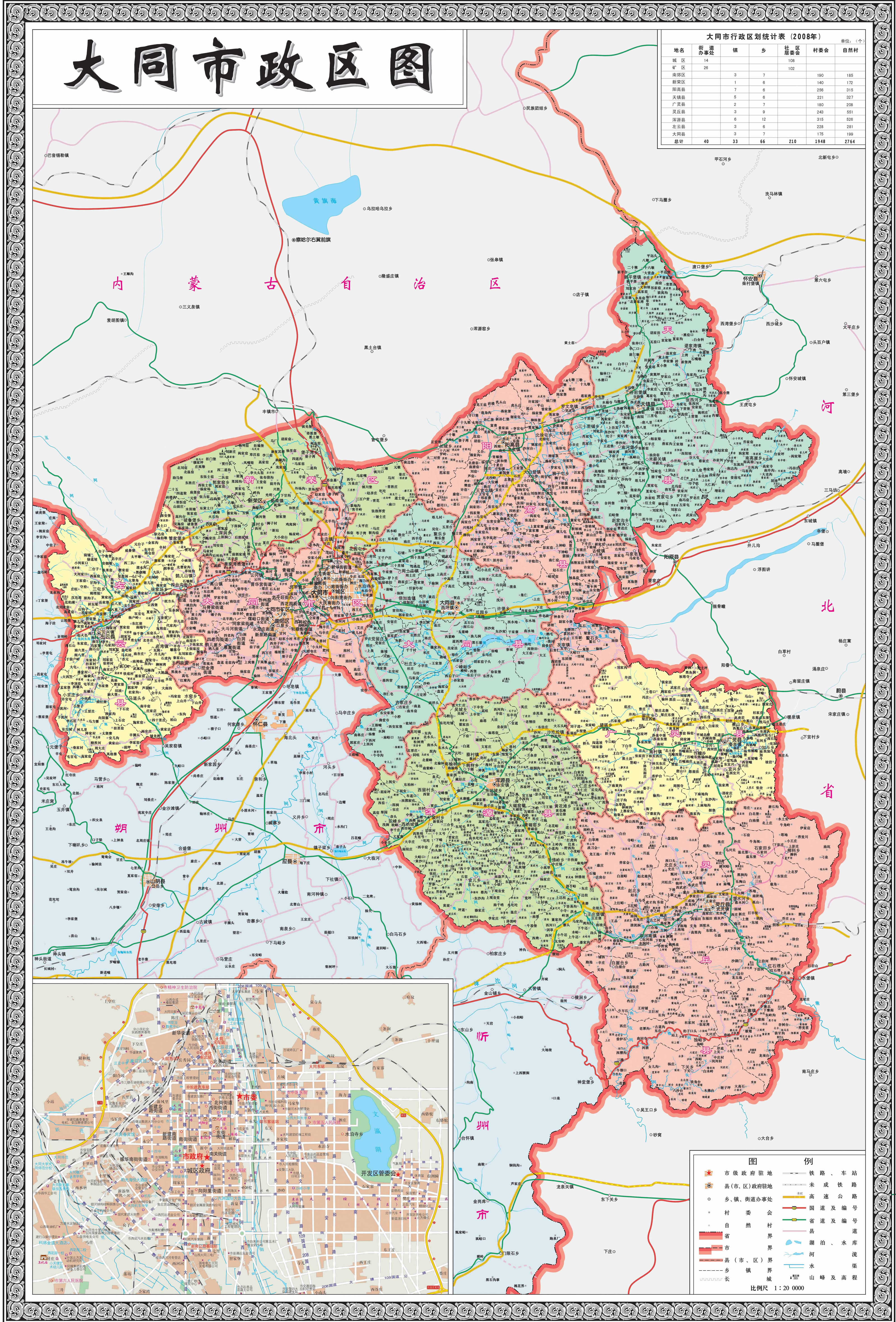 大同市轄4個(gè)市轄區(qū)、6個(gè)縣: