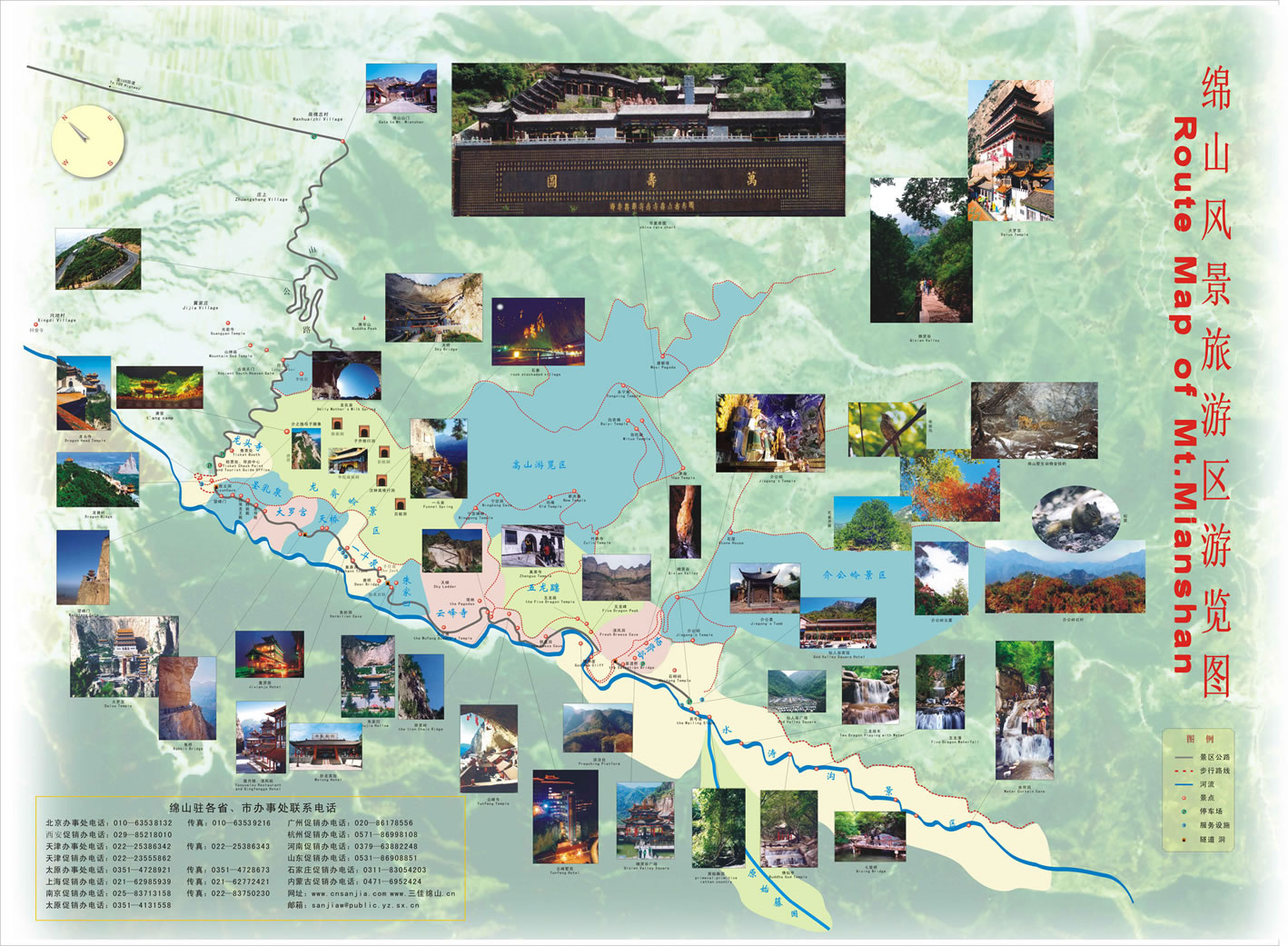 9、綿山之神為介之推,距今2600多年,為最早的道家人物之一 。綿山之佛為空王佛,俗名田志超,原是一名唐代高僧,是漢人成佛的第一位。此外初唐大將尉遲公,北魏凈土宗先驅(qū)曇鸞也都是綿 山 特有的神佛。他們?nèi)际峭辽灵L的山西人,這為其它名山所不可比擬。綿山這神從無形天尊、無名天尊、無上元君到山神、土地,綿山之佛從燈明、妙光、燃燈到過去、現(xiàn)在、未來諸佛。神、佛之多之全,也為中國之最。