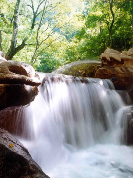 8、二十公里的水濤溝、蒼巖、曲徑、奇樹、怪石、山花、野草點(diǎn)綴其間,北魏酈道元《水經(jīng)注》所說的綿山 石桐水千回百轉(zhuǎn) ,湍湍流過,蒼鷹低回空谷鳥鳴,組成了一幅奇特的山水畫卷。其中的五龍飛瀑落差80余米,游人可從瀑下通過;水簾洞府瀑流從洞前飛流直下,洞內(nèi)可容納三四十人。這樣的風(fēng)光,在北方地區(qū)實屬罕見。