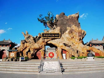 “根雕大門(mén)”是尋根祭祖園的正門(mén),為槐根造型,東西跨度20米,高13米,其造型古老滄桑、偉岸厚重、支根入土、虬勁有力,寓意大槐樹(shù)后裔同門(mén)、同根、同祖、同心。象征大槐樹(shù)兒女舍小家,取大義,扎根神州大地,為國(guó)家繁榮、民族昌盛孜孜不倦地艱辛勞作和奮斗拼搏。詮釋的是移民后裔共同的根,共同的老家,是大槐樹(shù)兒女的魂。