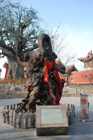 據(jù)考古人員鑒定,此根大約生長(zhǎng)在宋元時(shí)期,距今約1000年左右,遠(yuǎn)在明初移民之前。槐根高度6.2米,其中外露部分4.2米;备P(pán)枝錯(cuò)節(jié),形象奇特,能讓人產(chǎn)生豐富的聯(lián)想,是一棵罕見(jiàn)的大型古槐真根。