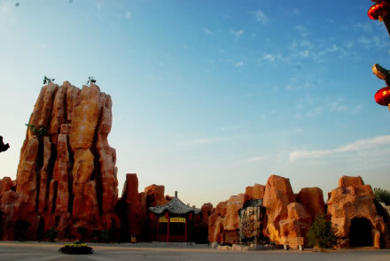 洪崖古洞建在這里與洪洞可是大有淵源的,因?yàn)楹槎催@個(gè)名字就是取自城南“洪崖”與城北“古洞”!昂檠聣q壁”與“古洞連云”這八個(gè)大字是由著名書(shū)法家董壽平書(shū)寫(xiě)的!昂檠鹿哦础闭嫉孛娣e800平方米,南北長(zhǎng)40米,東西寬20米,崖高16米,洞高4米,寬2.5米,洞內(nèi)蜿蜒曲折。