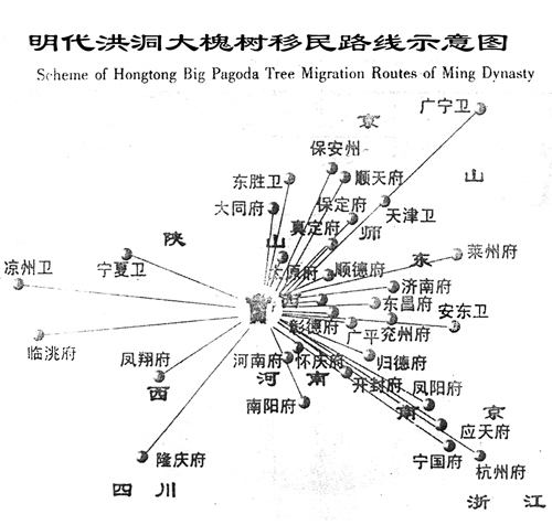 由于明朝大移民在山西省洪洞縣廣濟(jì)寺門(mén)前的大槐樹(shù)下進(jìn)行移民手續(xù)辦理,即移民的起點(diǎn),因此本次移民叫做洪洞大槐樹(shù)移民,而在此移民出去的人群,絕大多數(shù)并非洪洞縣人,甚至不是山西人。