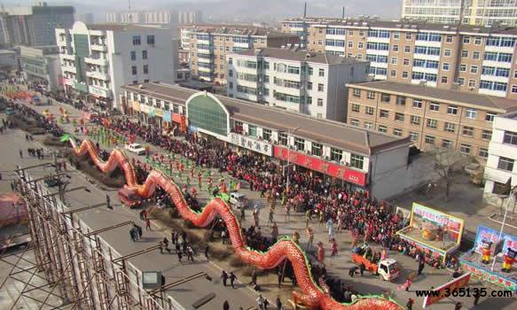 龍燈:也叫“龍舞”。身長20米左右,直徑60---70公分,內(nèi)用鐵絲做成圓形,安上燈泡或蠟燭,外用紗布包裹涂色而成。舞龍者由數(shù)十人組成。1 人在前用繡球斗龍,其余全部舉龍,表演“二龍戲珠”、“雙龍出水”、“火龍騰飛”、“蟠龍鬧海”等動作。