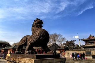 城隍廟是國務(wù)院重點文物保護單位,也是國內(nèi)保存最完整的城隍廟之一。占地面積6000平方米,始建于元至正二十二年(公元1362年),廟內(nèi)主殿建筑結(jié)構(gòu)精巧細(xì)致。主殿前 有玄鑒一座,高達(dá)25米,頗為壯觀,1999年世界歷史文化遺址保護基金會公布為全球最精美的古建筑之一,城隍廟是古代宗教文化中普遍崇祀的重要神之一,是護城佑民、主掌茗 籍之神。是古代“人神共治”思想的明確反映 。城隍廟前,有兩尊貔貅(pi xiu)威武地橫在門前的廣場上。這種據(jù)說只有嘴沒有屁眼的獸喻意“只進不出”,是發(fā)財?shù)娜皤F。在陽光下.鑄鐵的貔貅昂首挺胸,威風(fēng)凜凜,像一對忠誠的衛(wèi)士,日夜鎮(zhèn)守在古城。