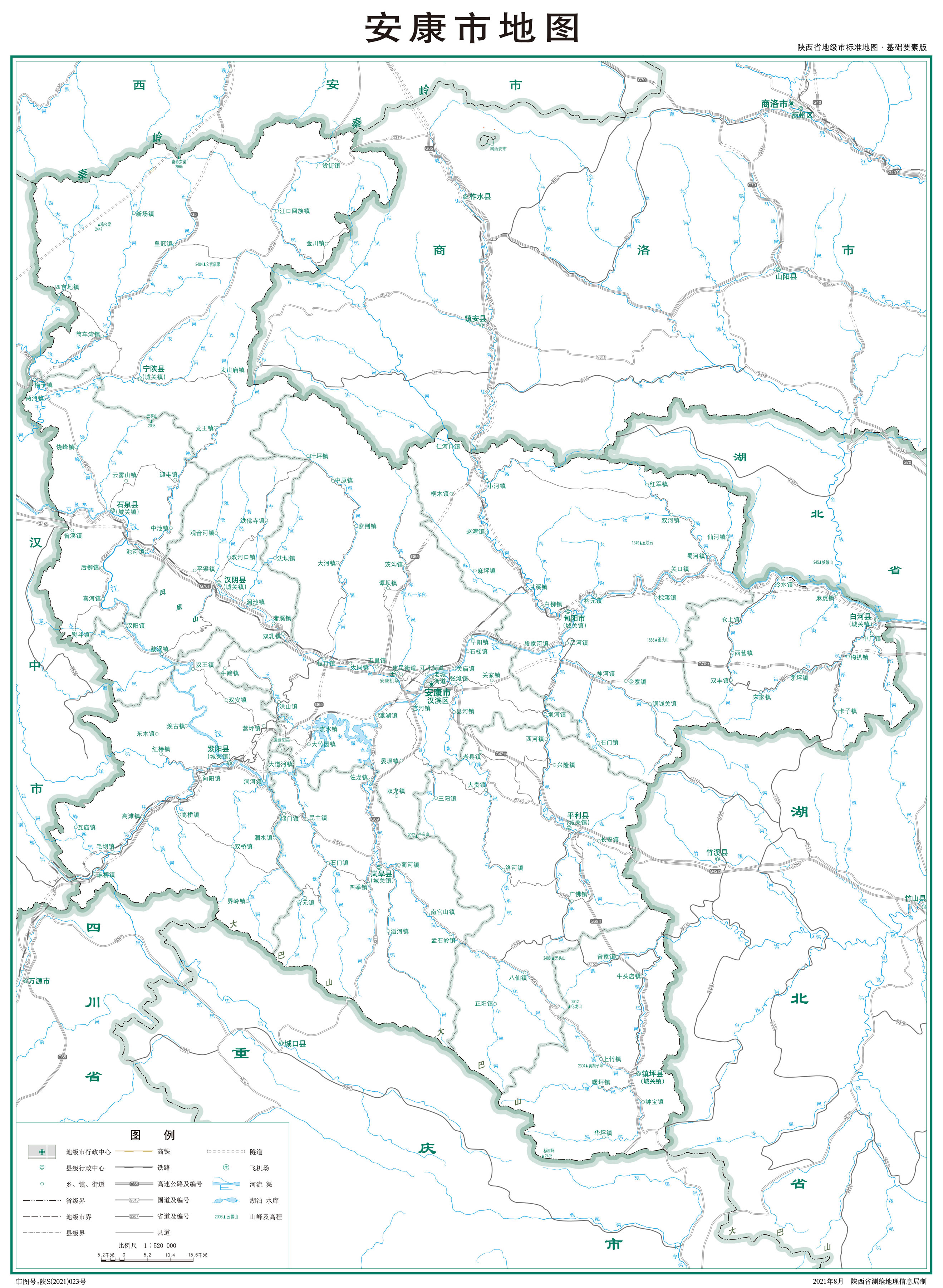 安康市轄1個(gè)區(qū)、8個(gè)縣,代管1個(gè)縣級(jí)市: