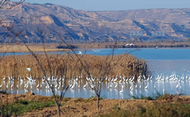 洽川地處我國(guó)候鳥南北遷徙的中軸線上,大片的黃河灘涂是鳥類的樂園。這里水源充足,魚蝦豐富,蘆葦茂密,氣候濕潤(rùn),每年10月至來(lái)年4月,都會(huì)有丹頂鶴、白天鵝、大鴇、灰鶴等70余種國(guó)家保護(hù)的一二級(jí)鳥類來(lái)此越冬,而黑鸛、蒼鷺、鴛鴦以及赤麻鴨等40余種留鳥則常年在這里繁衍生息,為洽川增添了無(wú)限生機(jī)。