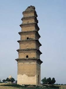 羅山寺塔位于和家莊鄉(xiāng)東馬村村南乳羅山東峰上,也是唐代所建。塔東西兩側(cè)各有清代進(jìn)士仵魁所筑土塔一座,遠(yuǎn)望狀如筆架,故又名“文峰”。塔南山坡下是孟莊鄉(xiāng)岱堡村,因之群眾俗稱“岱堡塔”。羅山寺已不存,今僅留塔。塔為樓閣式空心方形,原為九級(jí),頂已毀,現(xiàn)存八級(jí),殘高約30米。面闊與進(jìn)深均為三間,券門南向。塔內(nèi)原架木質(zhì)樓板,沿梯可登塔頂,今已不存。塔體呈紡錘形,無(wú)基座,各級(jí)券洞有假門。高大莊嚴(yán),為合陽(yáng)諸塔之冠,亦屬陜西省重點(diǎn)文物保護(hù)單位。明末清初關(guān)中八高士之一的李灌(向若)先生曾在塔下筑穴而居,稱“小桃源”;清代合陽(yáng)女詩(shī)人雷敬(史夫人)尋夫到此,曾用銀簪在羅山寺門前的照壁刻下“寺野鐘聲遠(yuǎn),山荒風(fēng)雨多”的詩(shī)名。大像寺位于平政鄉(xiāng)安陽(yáng)村東北。大像寺又名“大云禪院”,毀于抗日戰(zhàn)爭(zhēng)時(shí)期,獨(dú)留此塔。塔系宋代所建,為疊澀密檐式方磚塔,第一屋有券洞,內(nèi)為神龕,十三層,高約30米,下有長(zhǎng)寬各4.8米的方形基座。第一層塔檐下普柏枋上設(shè)有斗拱,仿木結(jié)構(gòu),懸空出挑,有實(shí)用價(jià)值,為本縣諸塔中所僅見。塔項(xiàng)已偏離中心5度,是名副其實(shí)的“斜塔”。大像寺又是一座奇妙的回音塔,站在塔北的土胡洞中用瓦片敲擊,便可聽到清脆的蛤蟆叫聲,其余三面均無(wú)此現(xiàn)象。