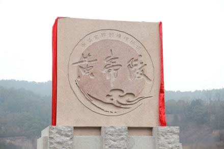 位于黃帝陵印池廣場(chǎng)前,于2017年3月16日落成。標(biāo)識(shí)碑正面雕刻的黃帝陵標(biāo)識(shí),圓形背景源自中華文化“天圓”的傳統(tǒng)理念,虛實(shí)相間體現(xiàn)時(shí)空轉(zhuǎn)換,圓形下方的大地和如意祥云圖案,寓意黃帝開(kāi)創(chuàng)的中華文明根植厚土、造福華夏。