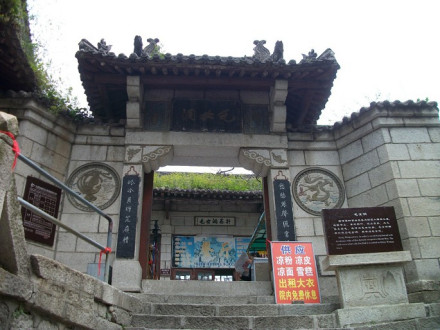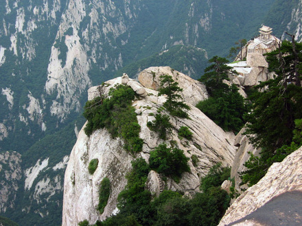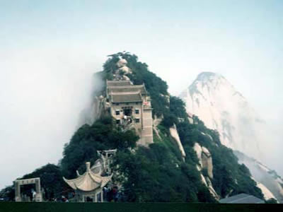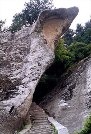 “通天亭”,因和山頂金鎖關(guān)通天門遙遙相對(duì),所以叫“通天亭”,從這兒出玉泉院,“自古華山一條路”就從大家腳下開(kāi)始沿伸,全長(zhǎng)25華里,共有9567個(gè)臺(tái)階,沿途各位可以看到迷人的風(fēng)光山色,誘人的驚險(xiǎn)神道。