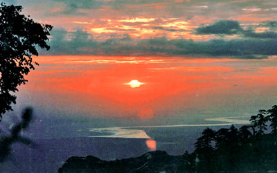登西峰極目遠(yuǎn)眺,四周群山起伏,云霞四披,周野屏開(kāi),黃渭曲流,置身其中若入仙鄉(xiāng)神府,萬(wàn)種俗念,一掃而空。宋名隱士陳摶在他的《西峰》詩(shī)中就有"寄言嘉遁客,此處是仙鄉(xiāng)"的名句。