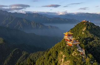 拔仙臺是太白山最高巔,從下向上望去,峰頂廟宇凌空,鍔刺藍天,李白有“舉手可近月”之形象比喻。然而攀上去,卻另是一番景象,臺面開闊平坦,向西直通跑馬梁,站上拔仙臺極目遠眺,果真是“會當臨絕頂,一覽群山小”。至若晴夏景明之時,北望秦川,渭河如帶,蜿蜒曲迥,川原似棋盤,阡陌縱橫。顏色灰暗處,是村落、城鎮(zhèn)與工廠。四顧環(huán)視,或石河石海廣布,似浪濤翻滾奔騰;深澗、懸崖如刀劈劍削,深不見底;山巒重疊,如犬牙交錯;唯拔仙臺如鶴立雞群,群山揖圍其下,如眾星捧月,景象別致。入夜,晴空月朗之時,山峰含黛,群星燦燦,萬籟俱寂,時有微風沙沙。每當夕陽西下或紅日初升之時,霞光四射,薄霧彤彤,云濤赤紅與金黃深淺相間,向陽巖壁、峰崖一片通紅,奇麗壯觀。 |
