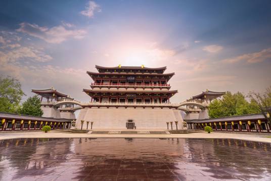 大唐芙蓉園,位于陜西省西安市雁塔區(qū)大雁塔東南側(cè),占地面積1000畝,其中水域面積300畝。大唐芙蓉園是在原唐代芙蓉園遺址以北,仿照唐代皇家園林式樣重新建造的,是中國第一個全方位展示盛唐風貌的大型皇家園林式文化主題公園。