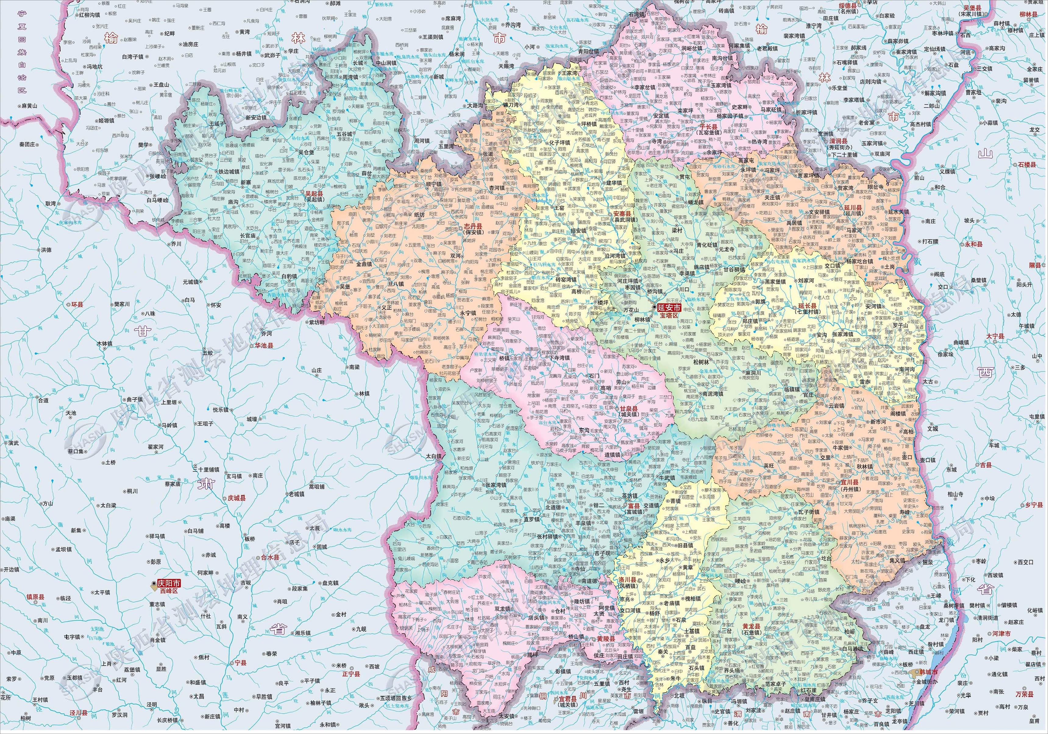 延安市轄2個市轄區(qū)、10個縣、代管1個縣級市: