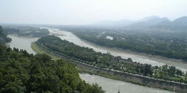 都江堰市地處四川成都平原的西北邊緣,地跨川西龍門山地帶和成都平原岷江沖積扇扇頂部位。市境內(nèi)地勢西北高,東南低。西北為山地,東南為成都平原,境內(nèi)山岳、丘陵、平原呈階梯狀分布,大約為“六山一水三分田”。舉世聞名的都江堰水利工程位于岷江出山進入平原處,是由戰(zhàn)國時秦國蜀郡太守李冰父子設(shè)計建造的。工程“深作灘、低作堰”,以“無壩引水”為特色。岷江經(jīng)此樞紐後,除金馬河繼續(xù)為干流外,另分了六條河流灌溉農(nóng)田,成為“天府之國”成都平原的繁榮基石,二千多年來一直發(fā)揮著巨大的作用。