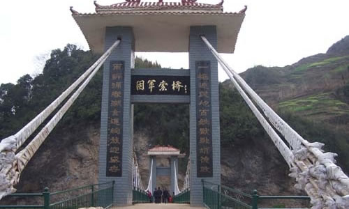 固軍索橋 萬源市固軍鄉(xiāng)中河村是萬源市2005年“7.8”洪災的重災村,洪災沖毀中河村原有鋼絲橋致中河兩岸2900余人無法過河、運輸。固軍中河索橋建設工程得到省以工代賑辦大力支持并被列為2005年省管重點項目,主體工程投資30萬元,其中國家投入以工代賑資金15萬元,下差資金由當?shù)卣腿罕娮曰I解決。該工程由萬源市交通局設計施工圖紙并負責技術監(jiān)管,橋設計為鋼筋混凝土斜拉索橋,全長95延米,寬3.5米,可承受5噸以下的微型車輛通行。