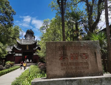 三絕云巖寺:始建于唐,明末焚于兵火,清雍正三年(1725年)重修。云巖寺在唐乾符年間(公元874年)就有東西二院,歷經(jīng)唐、宋、元、明、清毀茸交替,及佛道相爭(zhēng),形成“東禪林,西道觀”的格局。像云巖寺這樣建于山脊,背負(fù)三座主峰,坐北朝南而又是中軸線對(duì)稱布局的古寺院建筑群,在全國(guó)是罕見的。寺前山門外有李白贊圌山石碑一通,碑文“樵夫與耕者,出入畫屏中”,是國(guó)民黨元老于右任手書鐫刻而成。