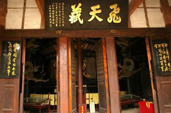 飛天藏又名星辰車,南宋淳熙八年(1180年)建,元代至正時(shí)重修,“明季兵火,惟此獨(dú)存”。是我國(guó)唯一現(xiàn)存的宋代道教木制轉(zhuǎn)輪經(jīng)藏。傳說(shuō)推動(dòng)星辰車,可祛病強(qiáng)身,延年益壽?上б?yàn)榈钣钫诜,未見到這件寶貝。