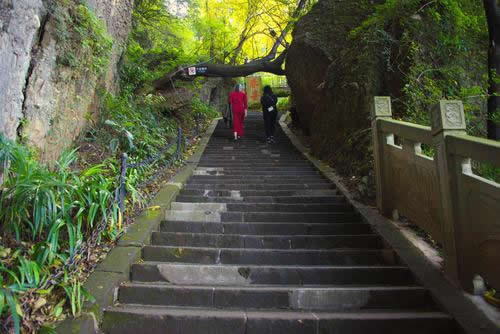 從竇圌山牌坊開始,是一條通往山頂?shù)牟叫惺荨ㄌ斓。通天道長(zhǎng)513米,806級(jí)石梯,垂直高差63米,俊俏瀟灑,直指云端。