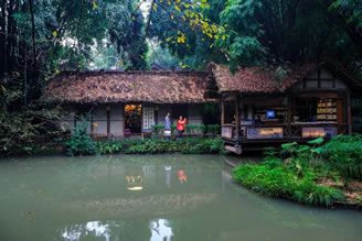 成都杜甫草堂博物館在宋元明清歷代都有修葺擴(kuò)建,已演變成一處集紀(jì)念祠堂格局和詩人舊居風(fēng)貌為一體,建筑古樸典雅、園林清幽秀麗的著名文化圣地。草堂完整保留著清代嘉慶重建時的格局,總面積近300畝。園林是非常獨(dú)特的“混合式”中國古典園林。