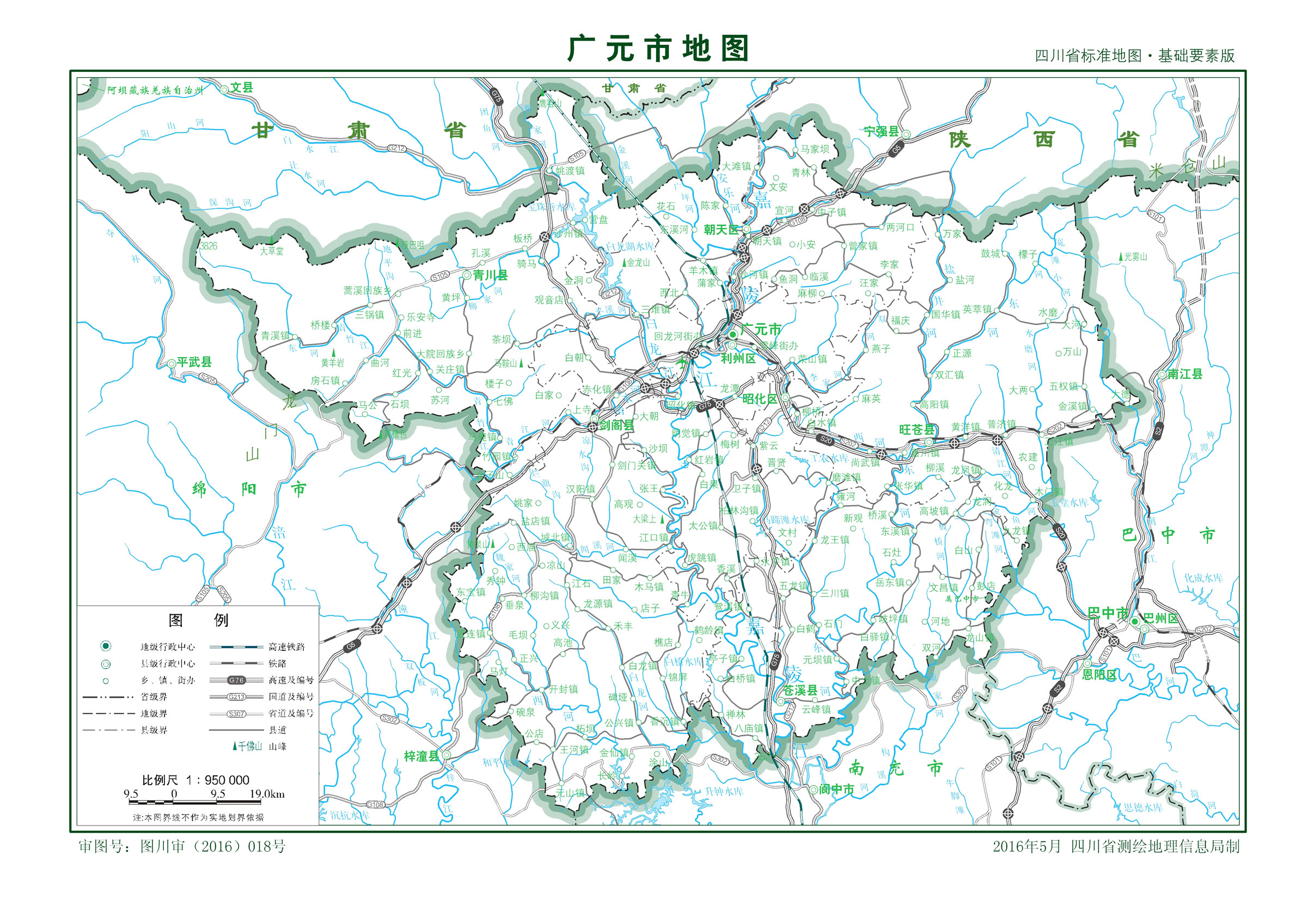 廣元市位于四川省北部,北與甘肅省武都區(qū)、文縣、陜西省寧強(qiáng)縣、南鄭區(qū)交界;南與南充市的南部縣、閬中市為鄰;西與綿陽市的平武縣、江油市、梓潼縣相連;東與巴中市的南江縣、巴州區(qū)接壤?偯娣e16319平方千米。