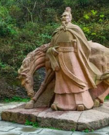 過關(guān)往南,游道右邊的這尊雕塑叫孔明立關(guān)。據(jù)《寰宇記》記載:“諸葛亮相蜀,鑿石駕空為飛梁閣道,以通行旅,于此立劍門關(guān)。”《輿地廣記》也記載:“蜀漢丞相亮……以閣道三十里至險,復(fù)設(shè)尉守之。”根據(jù)史料記載,劍門關(guān)是蜀漢丞相諸葛亮而設(shè)立,諸葛亮設(shè)立了劍門關(guān),架設(shè)了飛梁閣道,以后又多次經(jīng)過劍門關(guān),在出歧山伐魏時,也多次往來于劍門關(guān),他上《出師表》后,“率諸軍北駐漢中”時,也經(jīng)過了劍門關(guān)。