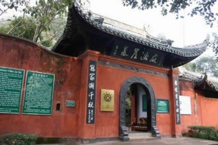 沫若堂位于靈寶峰西北一隅,由一中西合壁式的民房修萁而成,青磚灰瓦,樸素雅致。這是為紀(jì)念出生于樂山沙灣的郭沫若而建的。門額“沫若堂”三字為楚圖南所書,門兩側(cè)是著名作家馬識途撰寫的對聯(lián)。