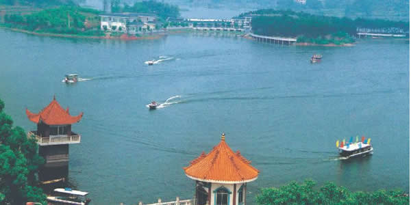 川南海潮湖旅游區(qū):它離瀘州城約20公里,沿瀘州——自貢公路而行,沿途風(fēng)光綺麗,不過(guò)三十分鐘便到,是集發(fā)電生產(chǎn)、旅游觀光為一體的大型水域風(fēng)景區(qū),總面積約18平方公里,其中有瀘州最大的水力發(fā)電站,百年桂元林,米溪溝支流風(fēng)景區(qū)等。川南海潮湖旅游區(qū),石刻華表大門,古今名家題辭,盈入眼簾;山莊旅舍、賓館樓群,則環(huán)繞于湖岸;湖兩岸繁花異木、水草青青、綠樹(shù)叢叢、鳥(niǎo)語(yǔ)陣陣;沿湖的水上長(zhǎng)廊,盤旋蜿蜒;崖邊棧道,曲折通幽;洞中探險(xiǎn),引人入勝;玲瓏拱橋,長(zhǎng)虹臥波,各式各樣的景點(diǎn),使人如在夢(mèng)中,如醉如幻,流連忘返。