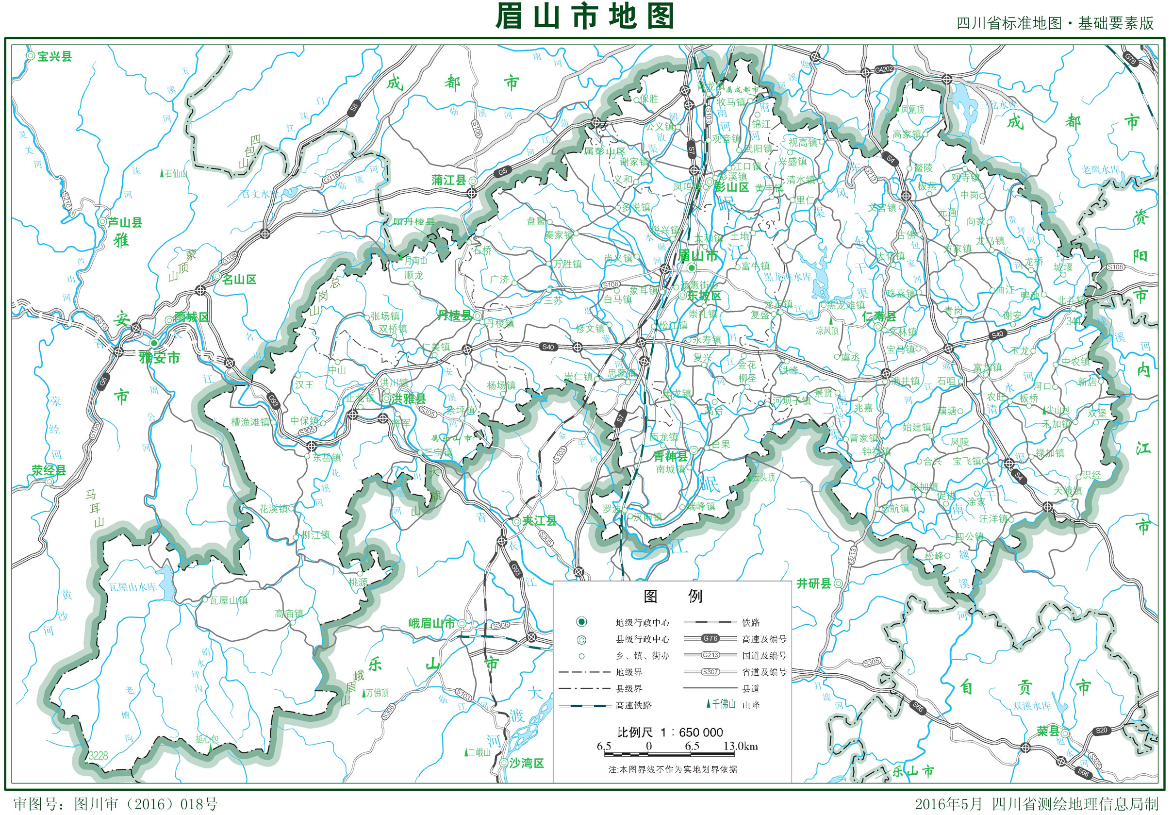 眉山市位于四川盆地成都平原西南部,岷江中游。東西長150千米,南北寬72千米,北接省會(huì)成都市,南連樂山市,東鄰內(nèi)江市、資陽市、自貢市,西接雅安市,轄區(qū)面積7140平方千米。