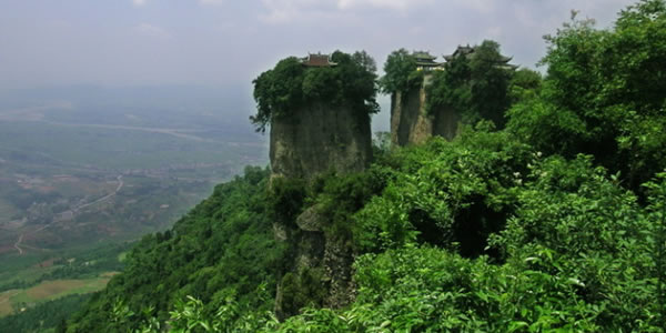竇圌山:又名圌山,位于四川江油城北20公里的涪江東岸。又名圌山。相傳唐代彰明(今屬江油縣)主簿竇圌(字子明)隱居于此,故名。自麓至頂約5公里許,行道迂回盤旋,林木蒼翠,景色秀麗。 李白少年時(shí)曾游此山,題下千古絕句“樵夫與耕者,出入畫屏中”,后國民黨元老于右任手書鐫刻于山中石碑之上。