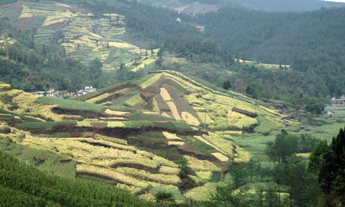 自然地理 含增鎮(zhèn)屬丘陵、高山相間地形; 盤江(通口河)東岸的吳家后山、乾元山為大山地帶,東南麓為丘陵。最高海拔為2106米,最低海拔540米,地型起伏變化大,地貌大多為喀什特,基巖溶洞陡坎多,巖石裸露地面多, 地質(zhì)多為石灰石風化層,境內(nèi)年降雨量700--1200毫米左右,氣溫較低,年平均氣溫15℃,平均日照900時左右,林木生長茂密,屬國家天然林天保護區(qū)。2000年底,該鎮(zhèn)有耕地面積6214.8畝, 其中田1791畝,地4423.8畝,天然林保護面積73130畝,森林覆蓋率55%,糧食作物主要以玉米、水稻、小麥為主, 油料作物以油菜、花生為主,經(jīng)濟作物主要有生姜、大蒜、海椒、薇菜等。養(yǎng)殖業(yè)以養(yǎng)豬、羊、牛為主,小家禽有雞、鴨、鵝、兔等。 自然條件 “四面青山環(huán)繞,生態(tài)純美;冬無嚴寒夏無酷暑是天然養(yǎng)生地”凡到過江油含增鎮(zhèn)的人,都會這么評價山城含增。這里清新宜人的環(huán)境的確令人稱道,尤以綠色植物景觀墻吸引人。這些數(shù)量眾多、規(guī)模宏大的景觀墻,如一道道綠色屏風,把含增裝扮得清幽無比。1950年代前,含增鎮(zhèn)跟江油其它鄉(xiāng)鎮(zhèn)一樣,并不為外界所知。國家實施“三線建設(shè)”后,長城特殊鋼公司三分廠落戶這里,含增便熱鬧起來,也現(xiàn)代起來,進而成為一座小城。與其它地方的“三線建設(shè)”不一樣的是,這里的職工生活區(qū)與廠區(qū)因大山的阻隔,相距較遠,沒有連在一起。含增便跟噪音、粉塵和一些有害化學物質(zhì)絕了緣,保持了清新、恬淡、自然的個性。過去,含增在城鎮(zhèn)建設(shè)上不太注重環(huán)境綠化,直到1980年代后,才有了明顯改觀。據(jù)三分廠含增街道辦主任張善進介紹,這是由于生活垃圾沒有及時處理,造成了環(huán)境污染所致。在環(huán)境美化上,含增人是動了腦筋的。由于含增地處山區(qū),對環(huán)境的整治便不能按常規(guī)思維進行,他們采取依山就勢、見縫插綠、因墻添綠的方式全面推進。在盤江賓館的街對面,有一道高5米、長50米的景觀墻。山坡上修建的是供應(yīng)全鎮(zhèn)一萬多人使用的自來水塔。為了綠化美化這塊巨大墻體,精明的含增人在墻的頂部栽種了迎春花和常春藤。一年四季,季季景色各不相同。早春,迎春怒放,黃花朵朵,向人們傳遞著春的氣息;夏天,常春藤碧綠如洗,枝蔓從墻頭攀爬下來,恰似一道綠色瀑布從天而降;秋冬季節(jié),藤葉紅黃相間,猶如一幅五彩繽紛的國畫。迎賓路旁,有長百米的建筑填方地段。含增人匠心獨運,設(shè)計了兩層仿古觀景臺,路邊建起了仿古的樓臺亭閣,供人們休閑娛樂。整個建筑全用植物造景,給人以步移景換的感覺。樓臺邊有古樹環(huán)繞,亭子上有紫藤攀爬,水榭邊有杜鵑依偎,而兩層觀景臺前,種有碧綠的倒槐和塔柏;后墻上,攀爬能力極強的爬山虎正極力擴張地盤。從遠處看,兩道后墻如兩塊綠色掛毯貼在墻上。含增街道辦后的山坡上,建設(shè)者還巧妙地利用盤江盛產(chǎn)的丹景石造景,上刻李白的《訪戴天山道士不遇》等詩篇,四周栽上月季、黃楊等綠色植物,一股清新的文化氣息撲面而來。在含增,很難發(fā)現(xiàn)兩塊形狀相似、栽種植物一致的綠色墻體。這又是含增人的精明之處,他們除用藤本植物和灌木作為遮掩墻體的綠色植物外,還廣泛利用喬木巨大的遮陰功能,掩飾墻體。從生活區(qū)通往廠區(qū)的盤江路兩邊,茂盛、壯實的夾竹桃形成了一條綠色通道。白的、粉紅的花朵迎風招展,有如成群的處子在舞蹈。在迎春路邊,成排的法國冬青枝繁葉茂,連綿不絕,恰好擋住了裸露的山巖。“經(jīng)過20多年不懈努力,綠色意識早已深入含增人的心里。”張善進自豪地說。 經(jīng)濟發(fā)展 含增鎮(zhèn)工業(yè)經(jīng)濟發(fā)展條件優(yōu)越,態(tài)勢良好。 2004年,全鎮(zhèn)國民生產(chǎn)總值2 100萬元,其中鄉(xiāng)鎮(zhèn)企業(yè)總值 17589萬元,工業(yè)總產(chǎn)值12680萬元,財政收入230萬元,農(nóng)民人均純收入3255元,完成招商引資1115萬元。由香港瑞然集團天安石材公司對石灰石礦進行開采深加工,制成裝飾墻體磚、地板磚遠銷日本、美國。 含增鎮(zhèn)旅游資源十分豐富,鎮(zhèn)政府確立了將旅游業(yè)作為支柱產(chǎn)業(yè)的發(fā)展戰(zhàn)略,積極為旅游企業(yè)創(chuàng)造良好的經(jīng)營空間,特別是全力支持白龍宮、香水湖、天音巖重點景區(qū)開發(fā)和建設(shè),大力促進省級風景名勝區(qū)乾元山道路的改造和接待能力的提高。加強旅游市場管理,提高服務(wù)質(zhì)量,樹立良好的對外形象鎮(zhèn)政府還積極發(fā)展交通運輸、餐飲、娛樂等行業(yè),促進第三產(chǎn)業(yè)發(fā)展。 含增鎮(zhèn)農(nóng)業(yè)發(fā)展立足山區(qū)資源優(yōu)勢,大力發(fā)展無公害農(nóng)產(chǎn)品、藥材、山野菜、反季節(jié)蔬菜,農(nóng)業(yè)產(chǎn)業(yè)化主要依托朝匯農(nóng)業(yè)科技公司和蒼林藥材公司,帶動農(nóng)戶發(fā)展紅豆杉和天麻等藥材的種植,養(yǎng)豬協(xié)會帶動農(nóng)戶發(fā)展仔豬外銷工程 發(fā)展簡況 為認真學習貫徹2008年11月9日江油市委召開的中心組學習會議精神,2008年11月13日上午含增鎮(zhèn)召開了鎮(zhèn)村干部會議,鎮(zhèn)黨委書記劉強全面?zhèn)鬟_了會議精神和市委書記易林、市長宋開慧的重要講話。結(jié)合含增實